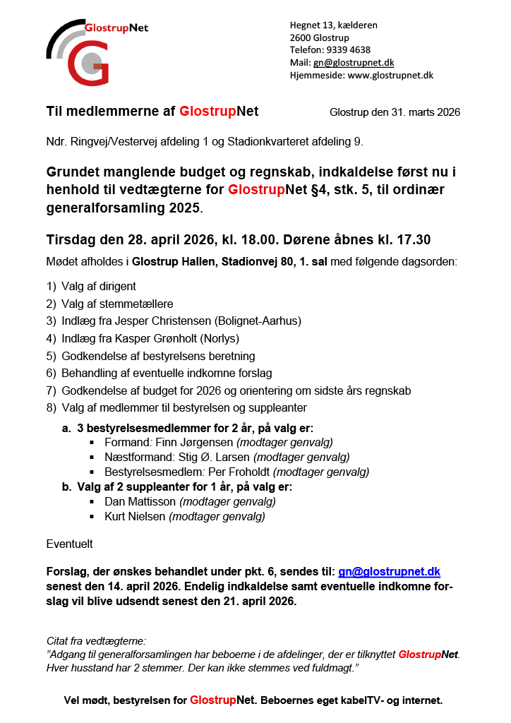 GlostrupNet – Beboernes eget kabel-tv og bredbåndsnet